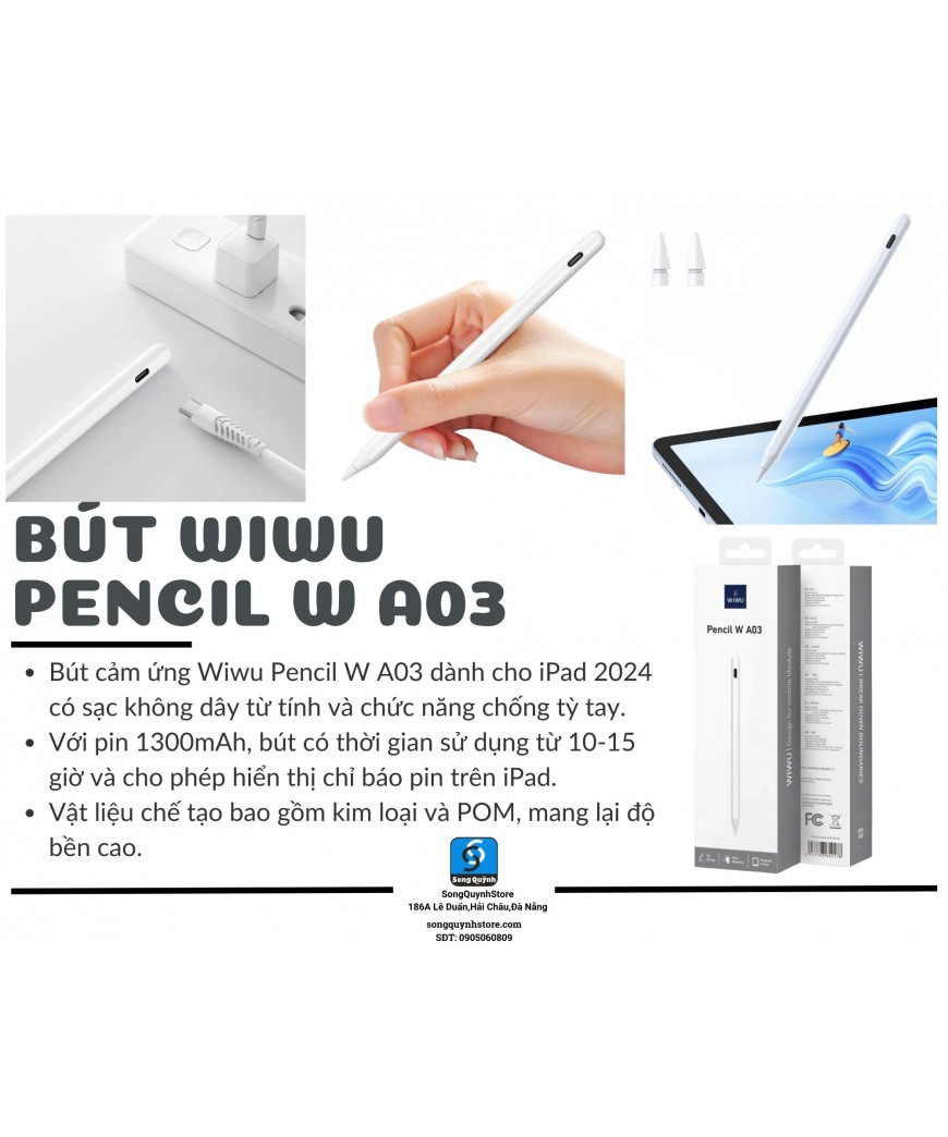 Mô tả Sản phẩm Bút cảm ứng Wiwu pencil W A03 sạc hít không dây cho iPad